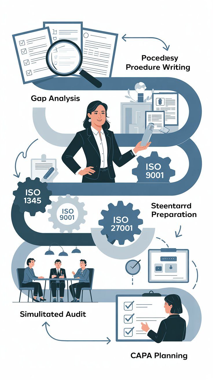 - מומחיות עמוקה בהטמעת תקנים: ISO 13485, ISO 9001, ISO 27001, ISO 45001, GDP/IMC-GDP, ותקנים נוספים לפי דרישות הלקוח.